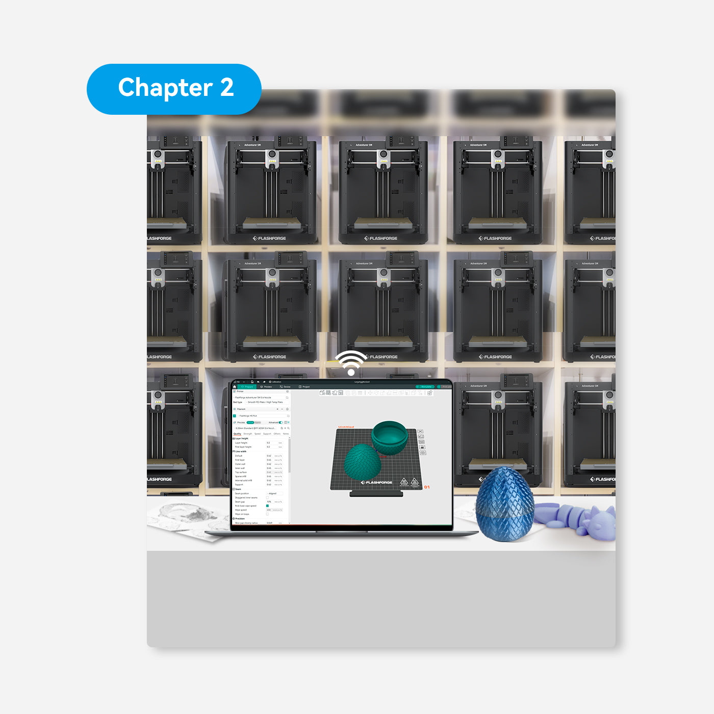 L'AD5M est idéal pour une ferme d'impression 3D, offrant une impression à grande vitesse, une sortie stable de haute qualité et un fonctionnement convivial, ce qui améliore considérablement l'efficacité de la production 3D personnalisée.