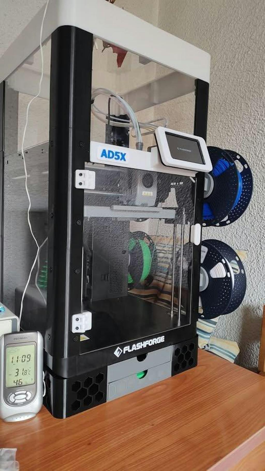 Sa construction robuste et son installation rapide en font un atout pratique pour tout espace de travail. Son design élégant et compact s'intègre parfaitement à l'AD5X tout en offrant une visibilité totale et un accès facile pendant l'impression.