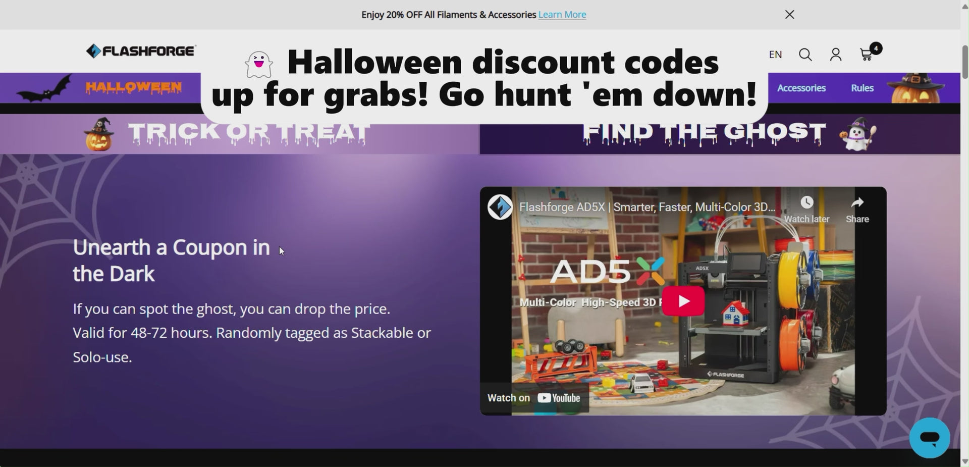 We may modify, suspend, or end the promo if technical issues or unforeseen events occur, or to maintain fairness. Questions? Contact customer@flashforge.com with subject Ghost Promo or online chat and include your code.